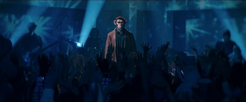 특히 기억에 남는 장면은 로비가 한 공연에서 수만 명의 관객 앞에서 미소를 짓다가, 무대 뒤에서 곧바로 고개를 숙이고 숨 고르기를 하는 순간입니다. 조명이 꺼진 후 찾아오는 어둠 속에서 그는 불안과 자기 회의에 잠기지만, 다음 무대를 위해 다시 침팬지 모습으로 분해 무대 앞으로 나아갑니다. 이 장면은 아티스트로서의 사명감과 인간적인 나약함이 동시에 드러나는 명장면입니다.