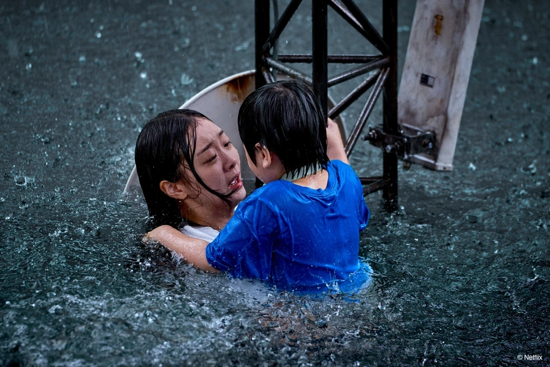 영화에서 물은 파괴적인 수마이자 동시에 생명의 근원이라는 이중적인 상징으로 기능합니다. 홍수는 인류를 멸망시키는 재앙이지만, 양수는 생명을 품은 공간이죠. 안나가 물속에서 아들을 지키는 장면은 이 두 가지 의미가 겹쳐지는 순간입니다. 물은 죽음을 가져오지만 동시에 새로운 생명을 잉태하는 매개체가 됩니다. 윤제경 감독은 재난을 단순히 소비하지 않고, 그 안에서 요동치는 인간의 감정을 시각화하려 했다고 밝혔습니다. 물이라는 소재를 통해 파괴와 창조, 죽음과 탄생을 동시에 보여주려 한 시도는 인상적이었습니다.