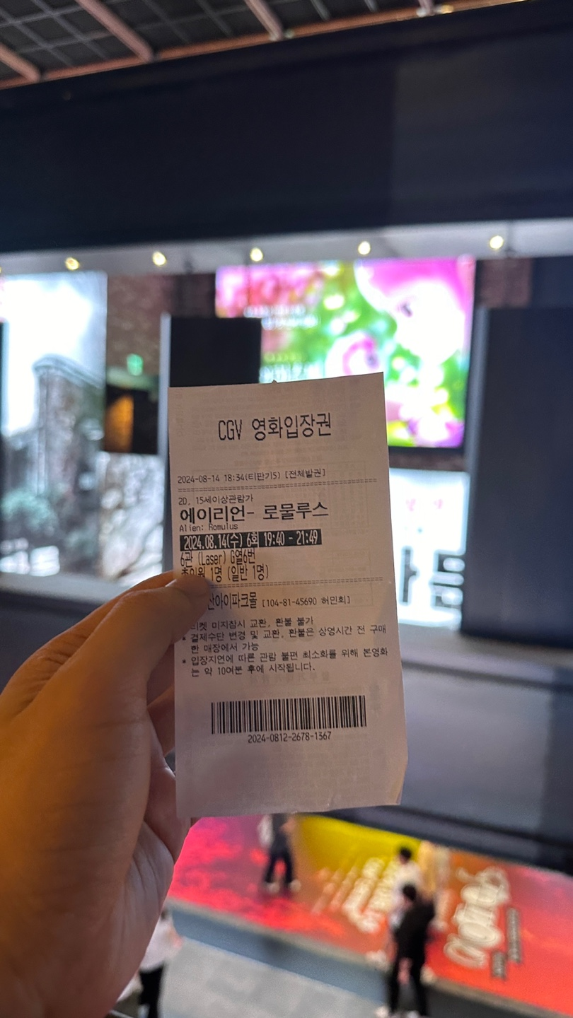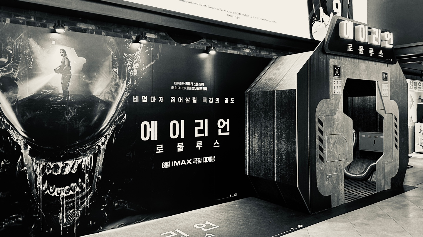 공포영화는 잘 못보는 편이지만 에이리언 시리즈는 좋아해서 45년전(!) 시고니 위버의 1편부터, 최근 커버넌트까지 다 챙겨봤고, 에이리언의 7번째 시리즈인 에이리언 로물루스를 에이리언 시리즈중 처음으로 개봉일에 영화관에서 보고왔습니다.