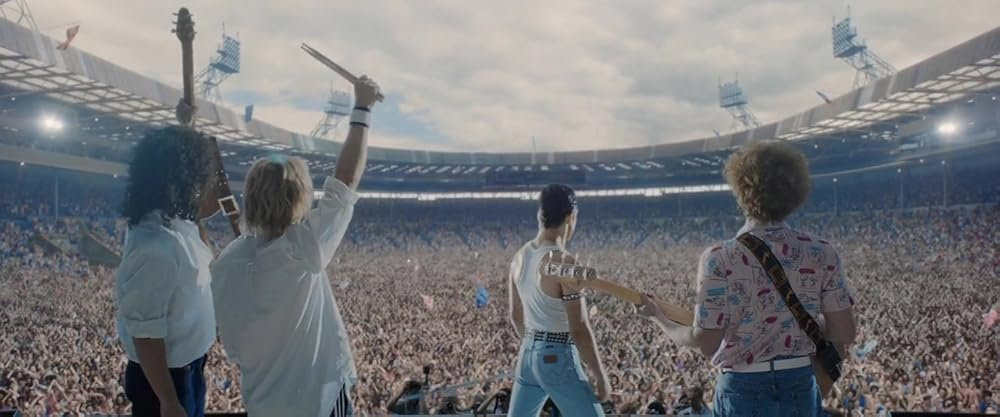 퀸의 다른 멤버들과 프레디 머큐리는 연락도 안할 정로도 깊은 갈등에 빠지기도 했지만, 라이브 에이드 공연 직전 극적으로 화해를 하며 역사에 남을 공연을 성공적으로 할 수 있었으며, 이 영화에서는 하이라이트로 20분 가량을 할애하며 가장 극적으로 재현해냈습니다. 영화내에서 각각을 연기한 인물중 프레디 머큐리를 연기한 라미 말렉이 제일 닮지 않았다는 평가를 받았지만, 그의 신들린 연기와 무브먼트 코치를 통해 프레디 머큐리의 라이브 에이드 공연을 완벽하게 재현하며 호평을 받았습니다.